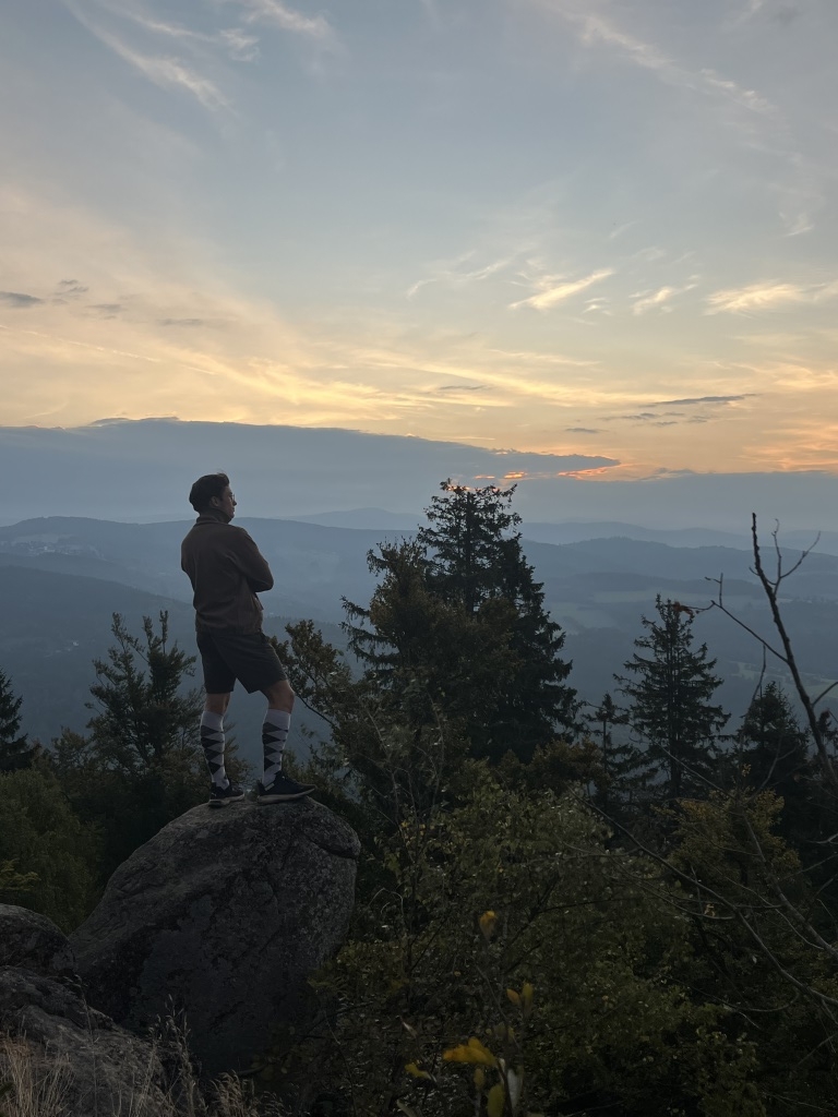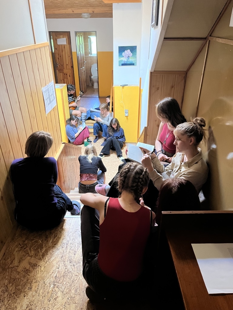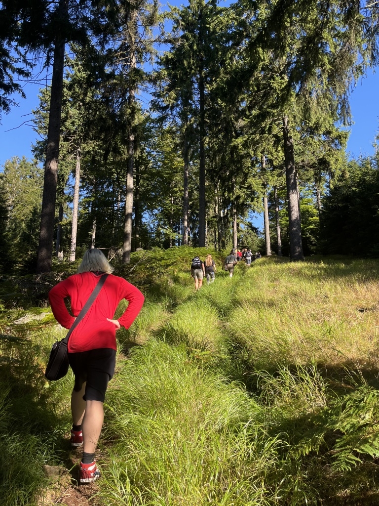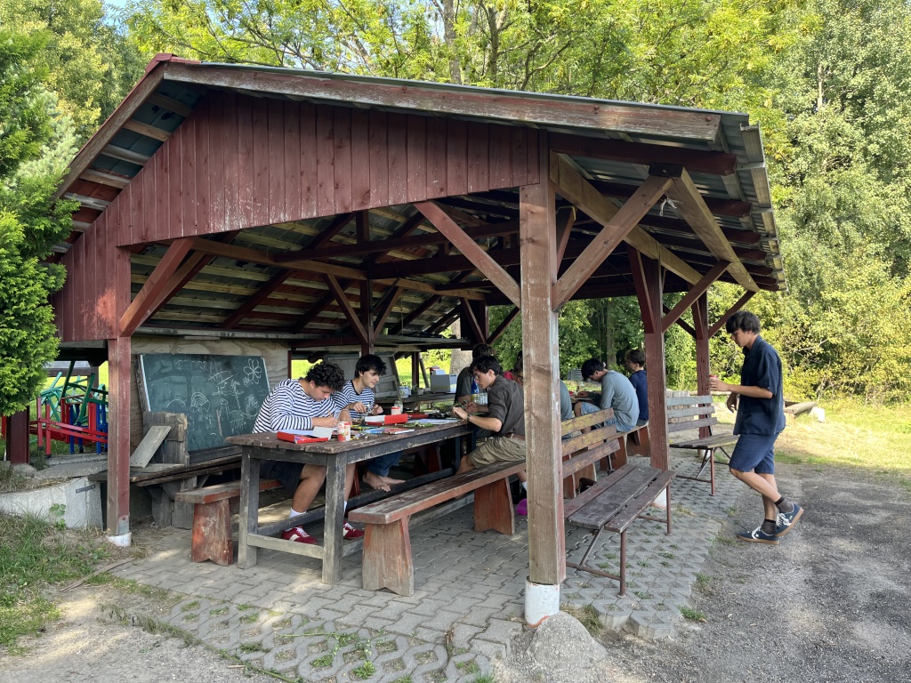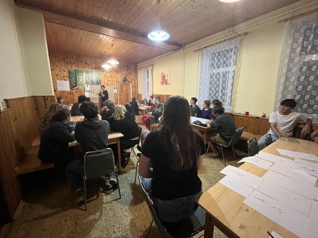 Všechno to začalo druhý školní den, tedy v úterý druhého září dva tisíce dvacet pět, když jsme se místo ve školních lavicích na opatovském sídlišti setkali uprostřed sherwoodského lesa v zastrčené uličce hlavního nádraží za Luxorem. Po četných zpožděních a neohlášených objížďkách jsme konečně v mírném dešti stanuli na zastávce Velké Hamry a čekal nás asi čtyř kilometrový výstup do vesničky Zásada, ze které šlo krásně přehlédnout snad celé podhůří Jizerských hor. Ubytovali jsme se ve veliké budově bývalé školy teď už kompletně přestavěné na pension.