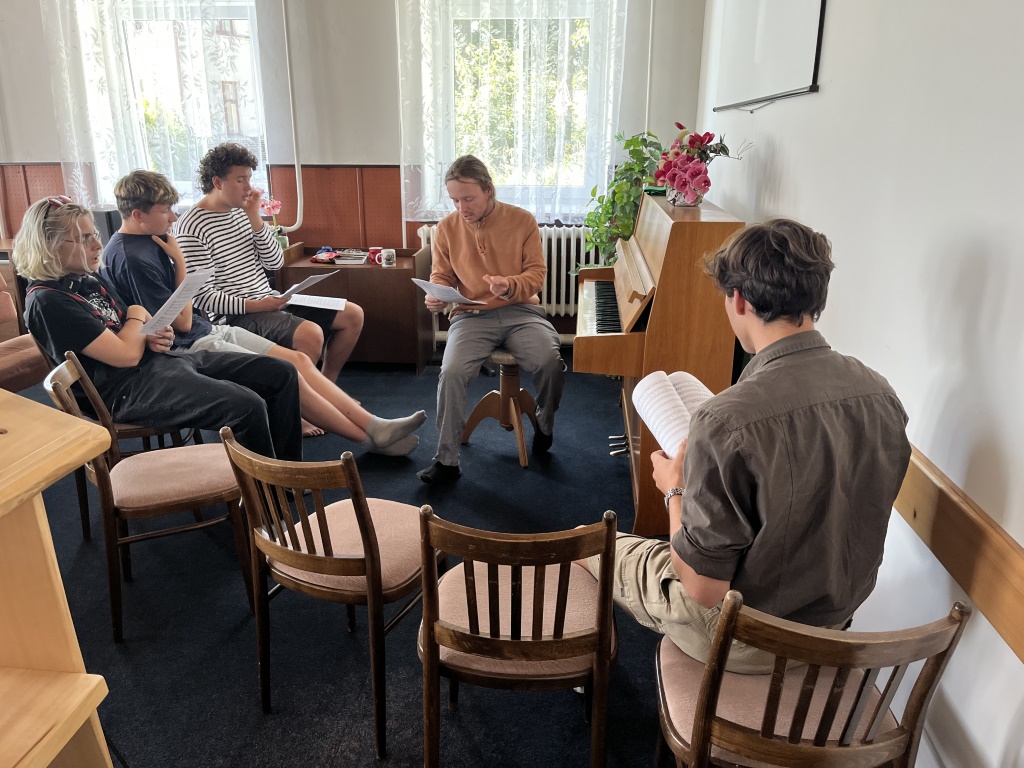Výsledný herbář je vystaven v chodbě v prvním patře naší školy. Po obědě a poledním klidu se skupiny vystřídali a následoval společný zpěv, abychom části Pendereckiho mše Missa brevis zkompletovali a slyšeli, jak Mozartovo Misericordias Domini zní se všemi hlasy a klavírem. Před spaním nám pan učitel Ševčík buď vyprávěl o významných biolozích, nebo jsme dělali společná zamyšlení a podobné aktivity, aby se naše znalost botaniky prohloubila ještě víc, protože v tomhle školním roce ji už mít nebudeme. Volný čas jsme trávili buď na pokojích, hráli ping-pong, nebo si povídali na chodbách.
